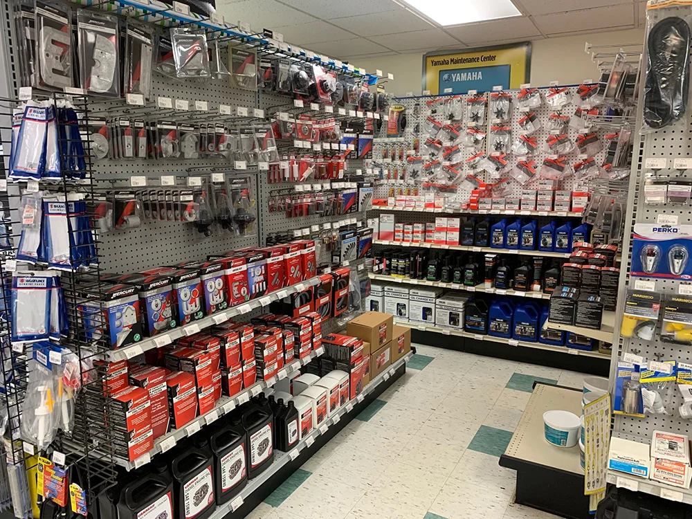 The marina store is stocked with everything you need on the water, including bait, lures, tackle, fishing gear, ice, drinks, snacks, and essential boating supplies, all in one convenient location.