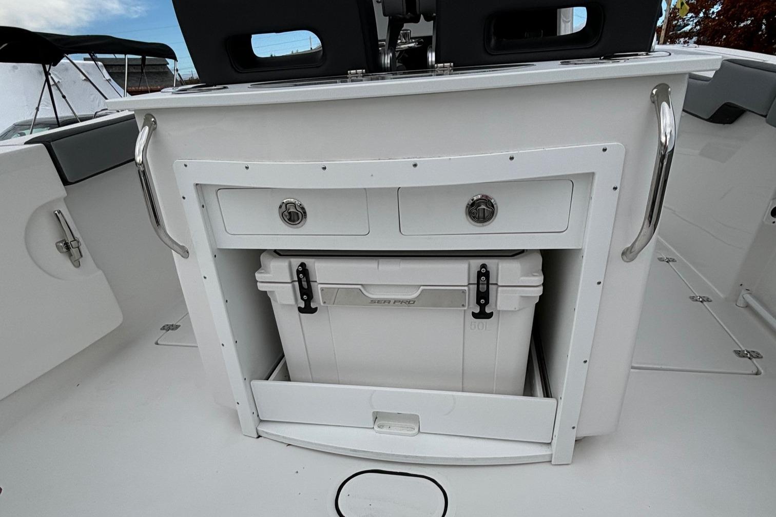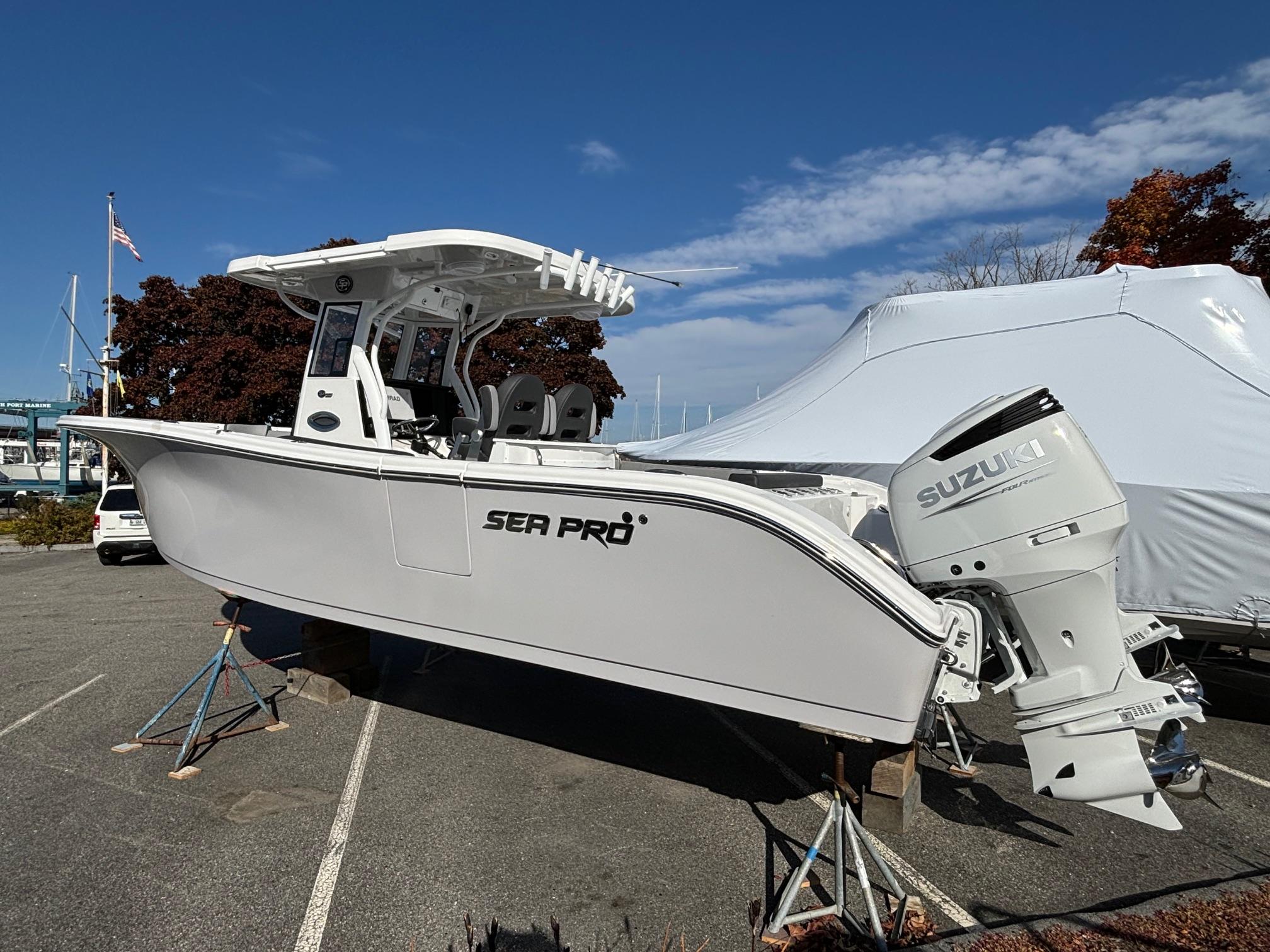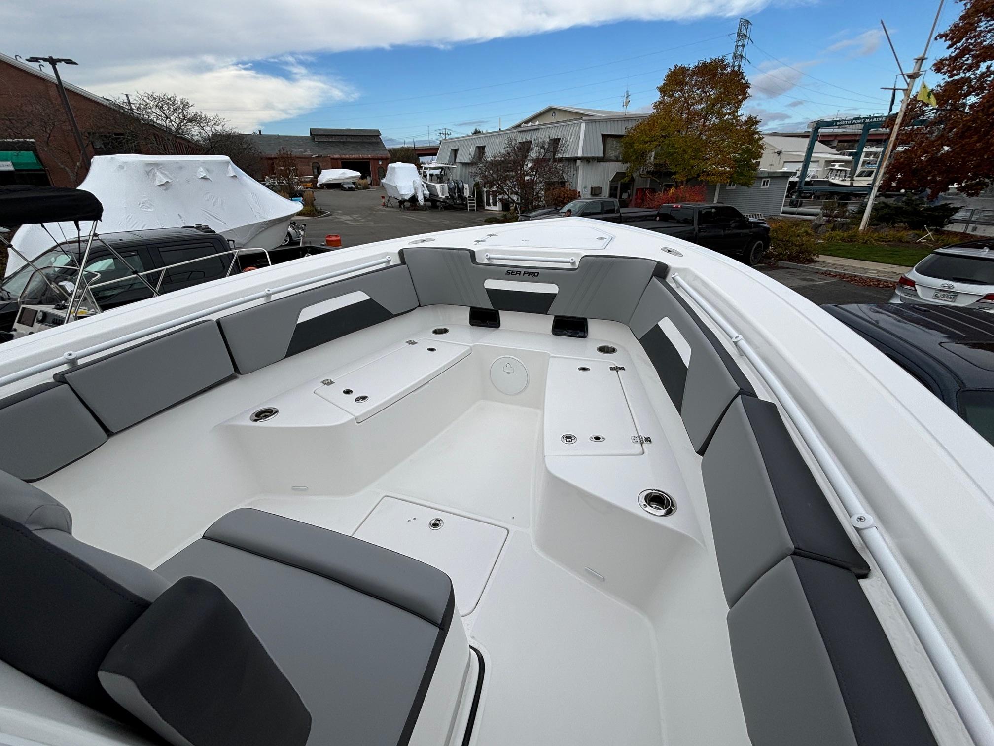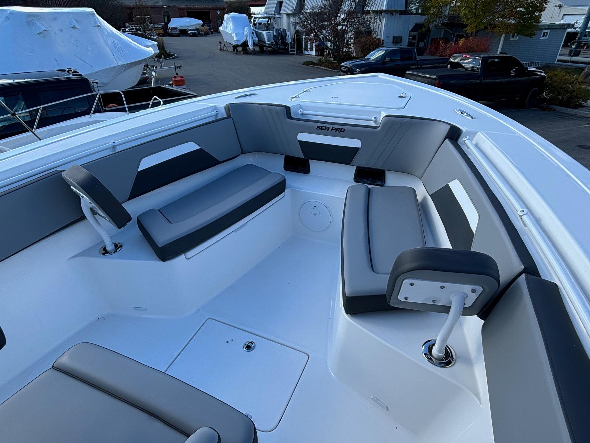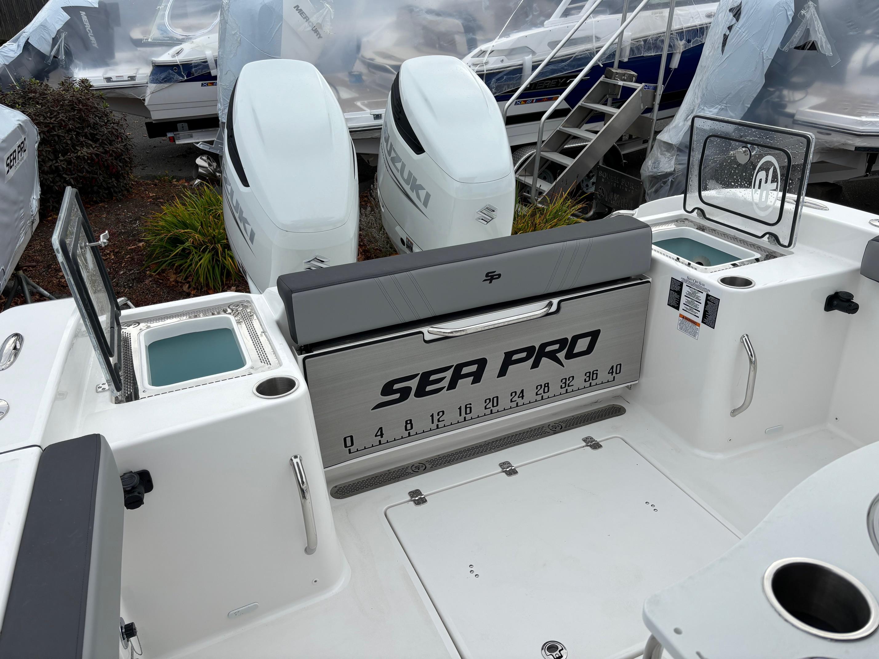 Here is the new Sea Pro 292 DLX! This boat is loaded with standard features like 16″ Simrad display, Zip Wake and Rotary Windlass to name a few.