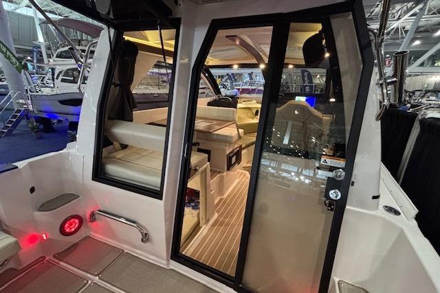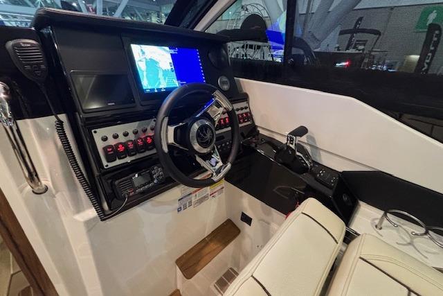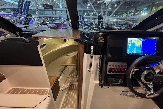 The S-250 C comes fully equipped to cruise and play. Standard features include autopilot, LiFePO4 batteries, air conditioning/reverse cycle heat, Garmin 8612xsv GPS chartplotter with sonar, color Yamaha engine display, bow and stern cameras, VHF, docking lights, premium Bluetooth stereo system, sport racks, built-in trailer lights, and much more.