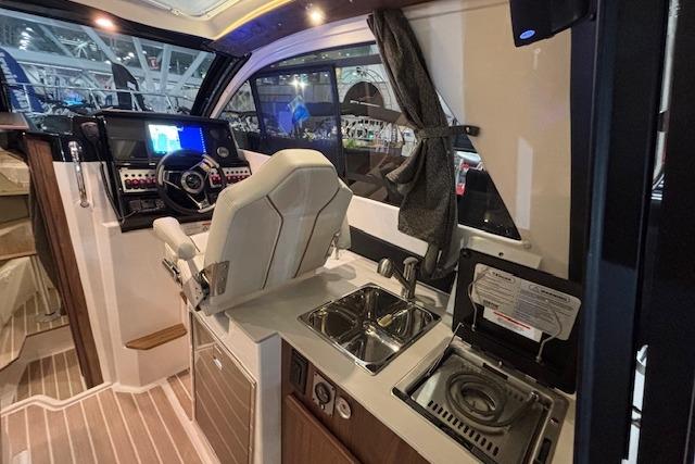 The Solara S-250 Coupe is a fully loaded luxury pocket cruiser perfect for overnighting, fishing, watersports, and day cruising. The S-250 C includes many of the amenities found on larger yachts, in a compact package. Meal prep is fun and easy in the full galley featuring a stainless-steel sink with hot and cold water, refrigerator/freezer, stove top, microwave, and plenty of storage space. This comfortable cruiser even has a private stateroom with an enclosed head and shower!
