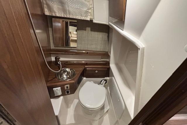 • Enclosed head, marine toilet w/ holding tank, pump out